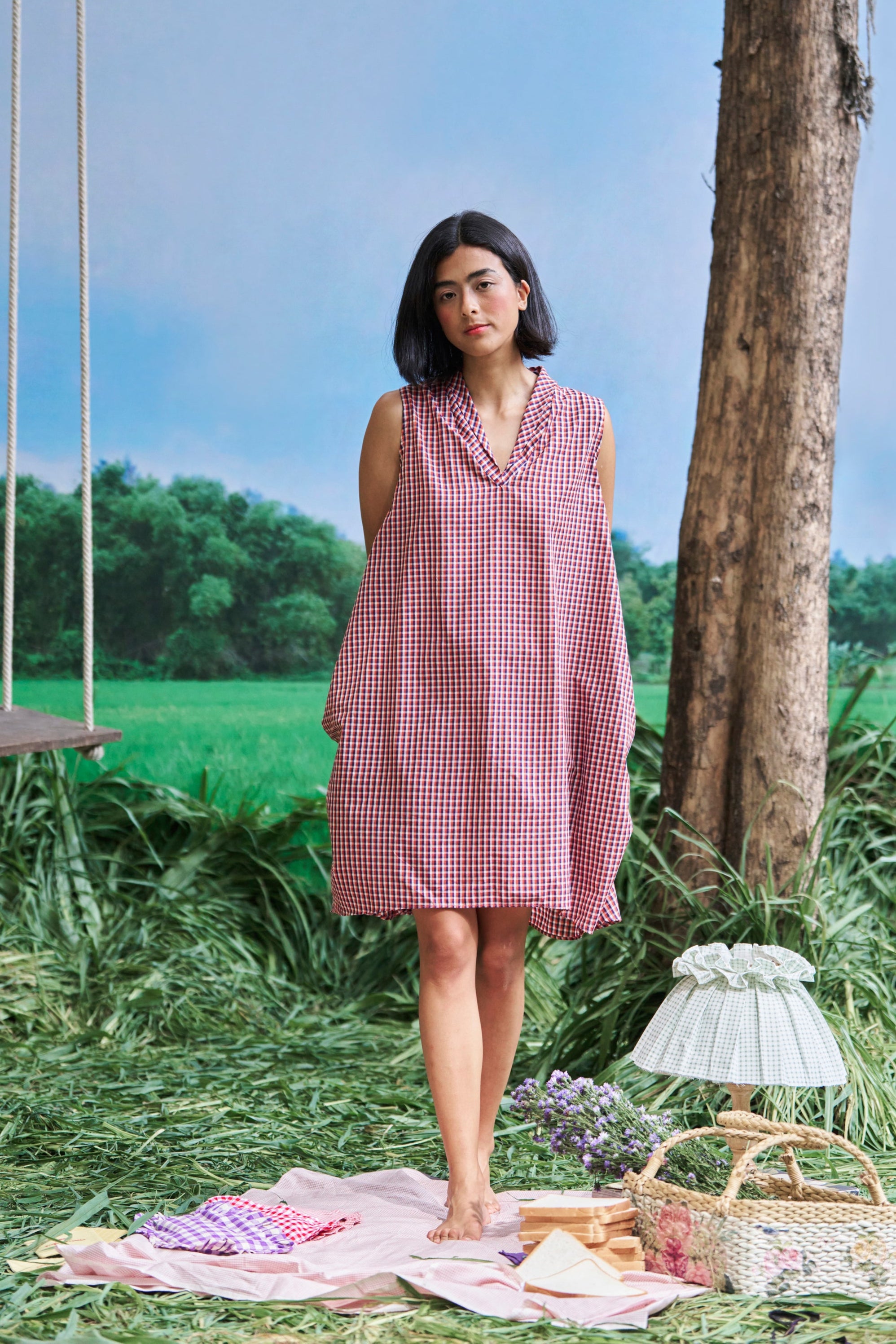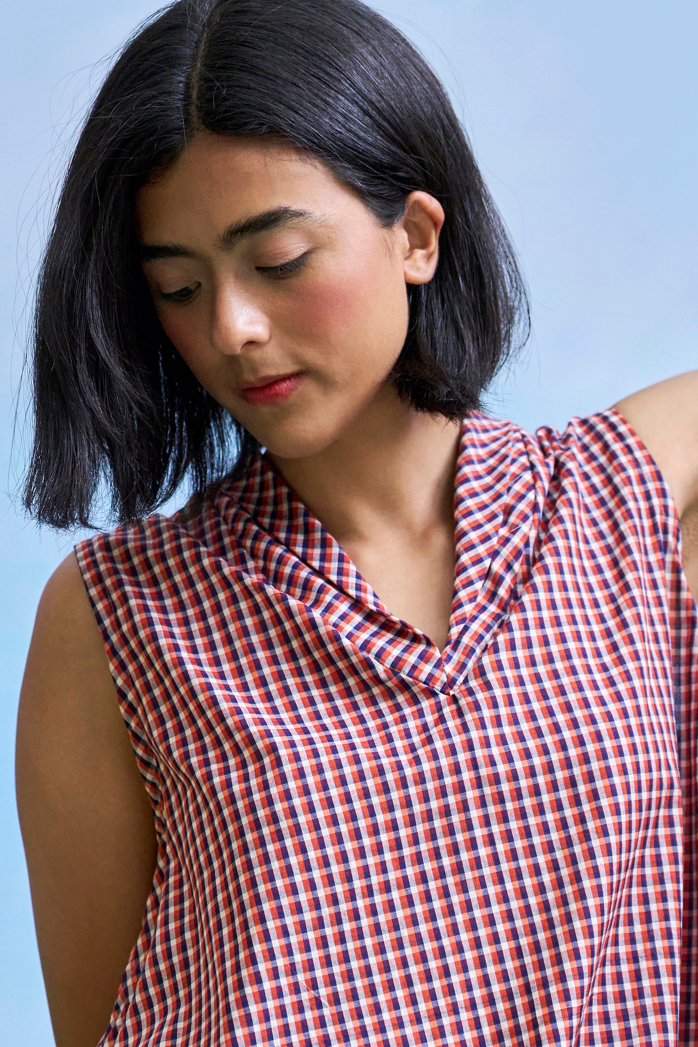Crafted in soft handwoven cotton checks, it comes in two nostalgic colour ways: