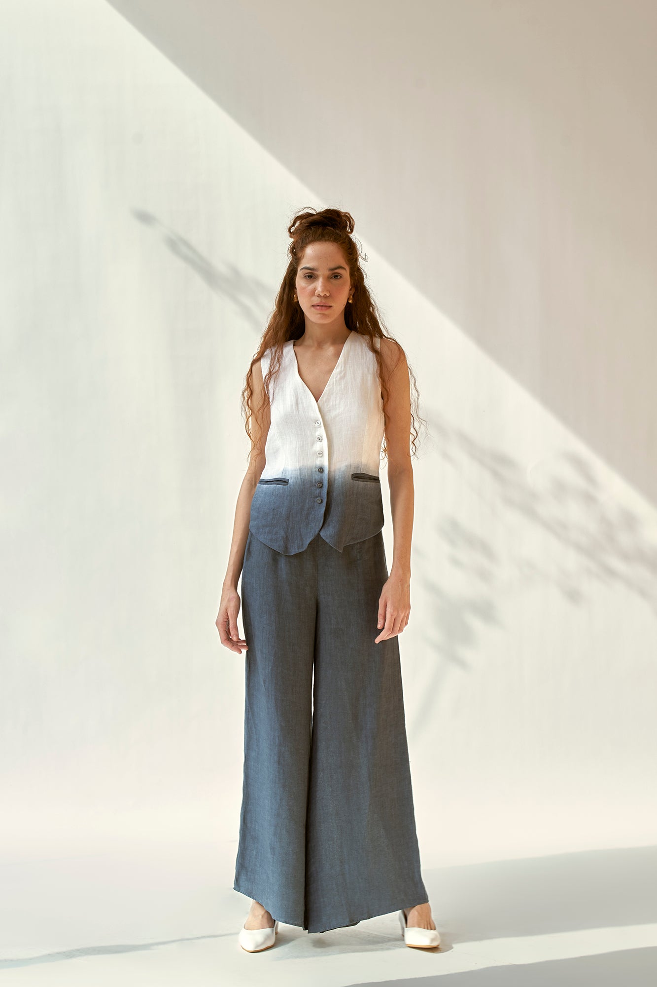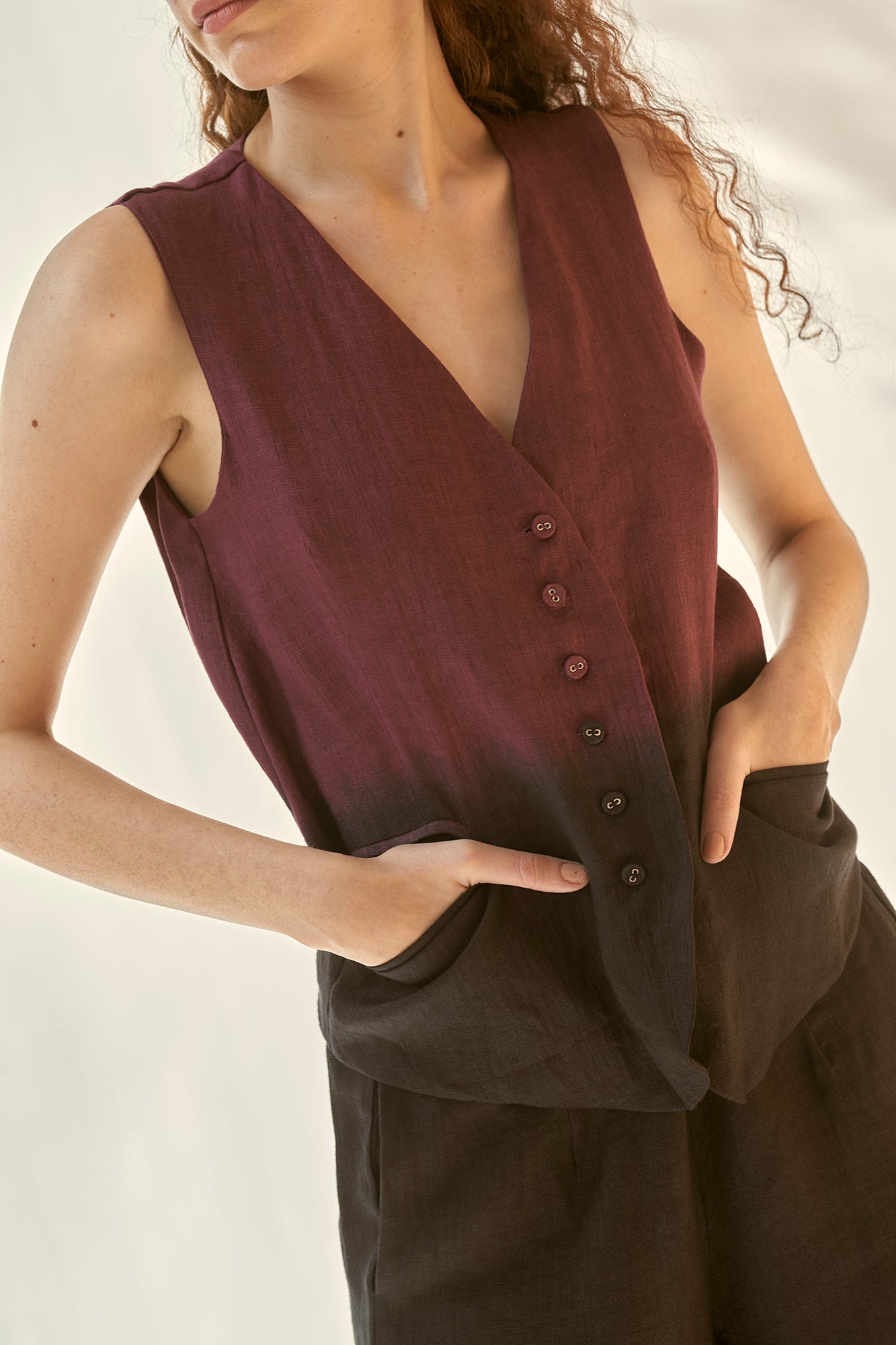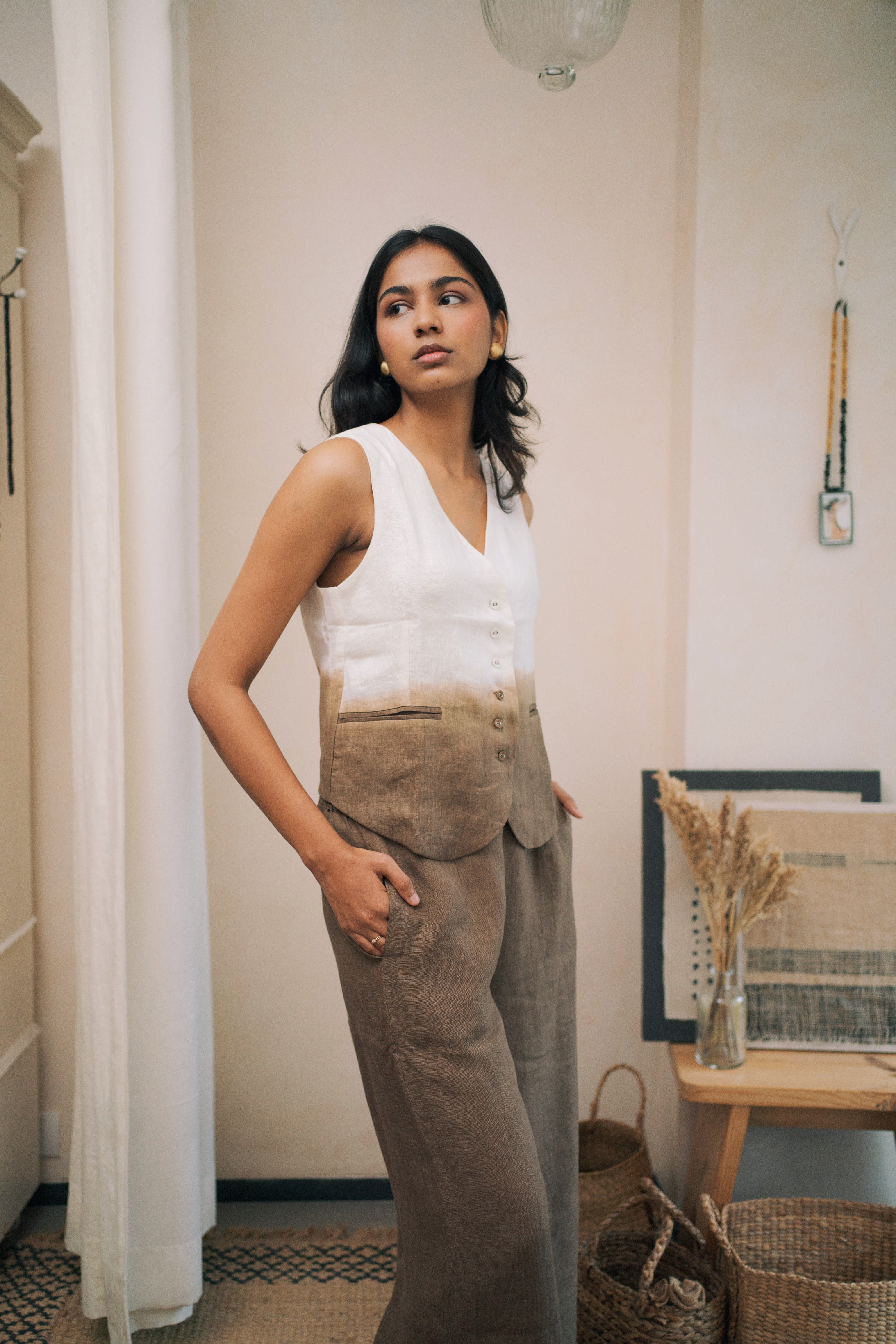 linen ombre waistcoat co-ord set