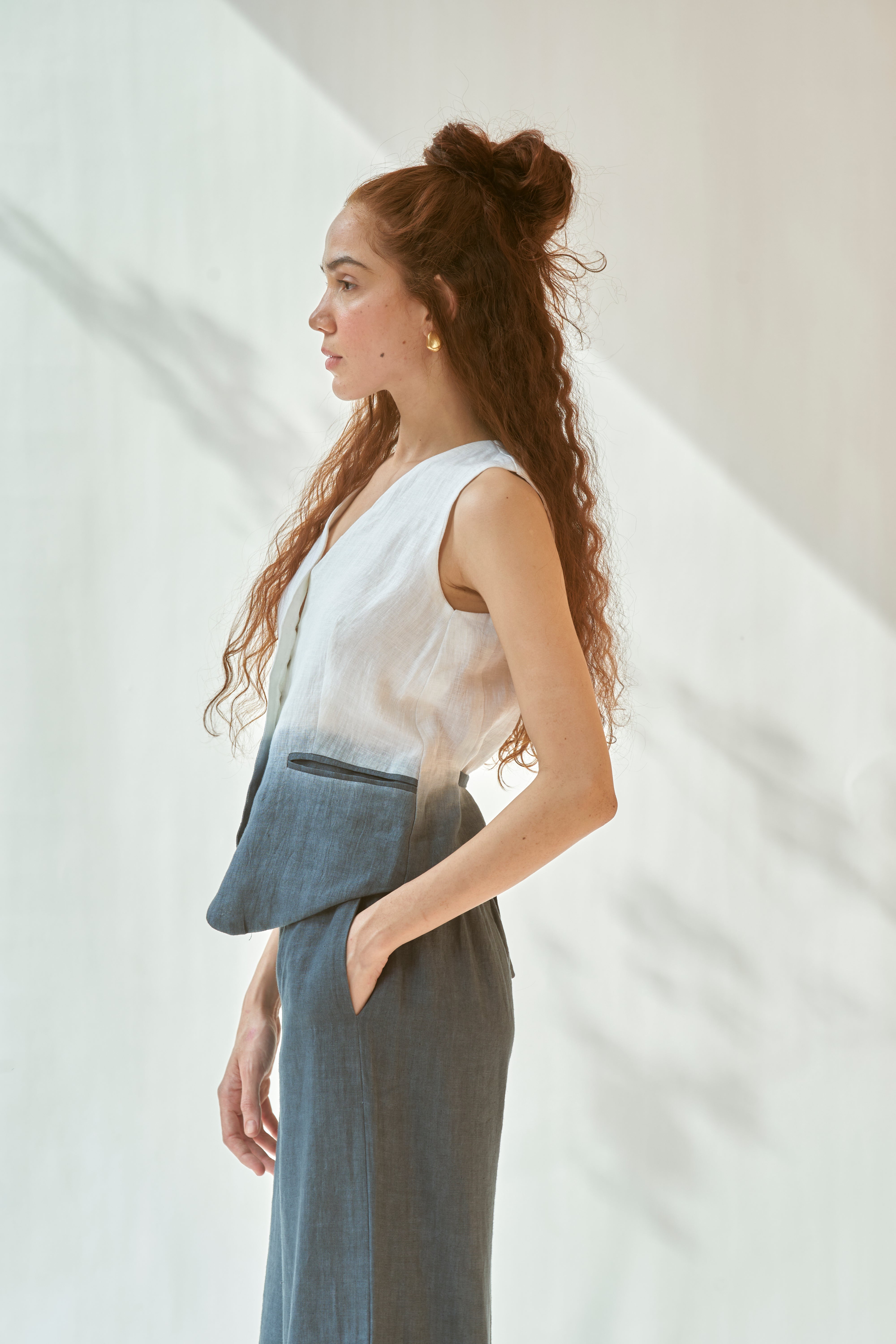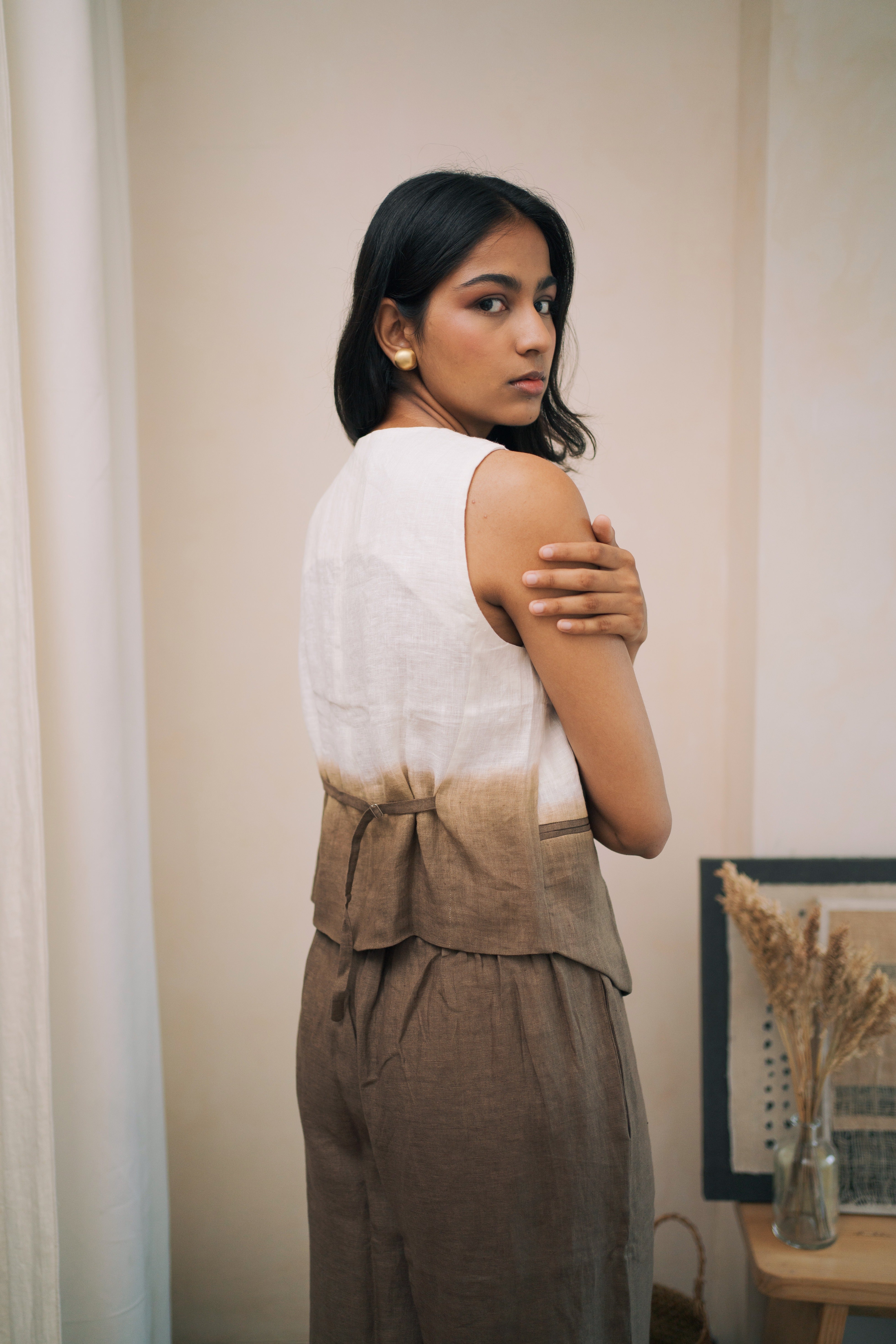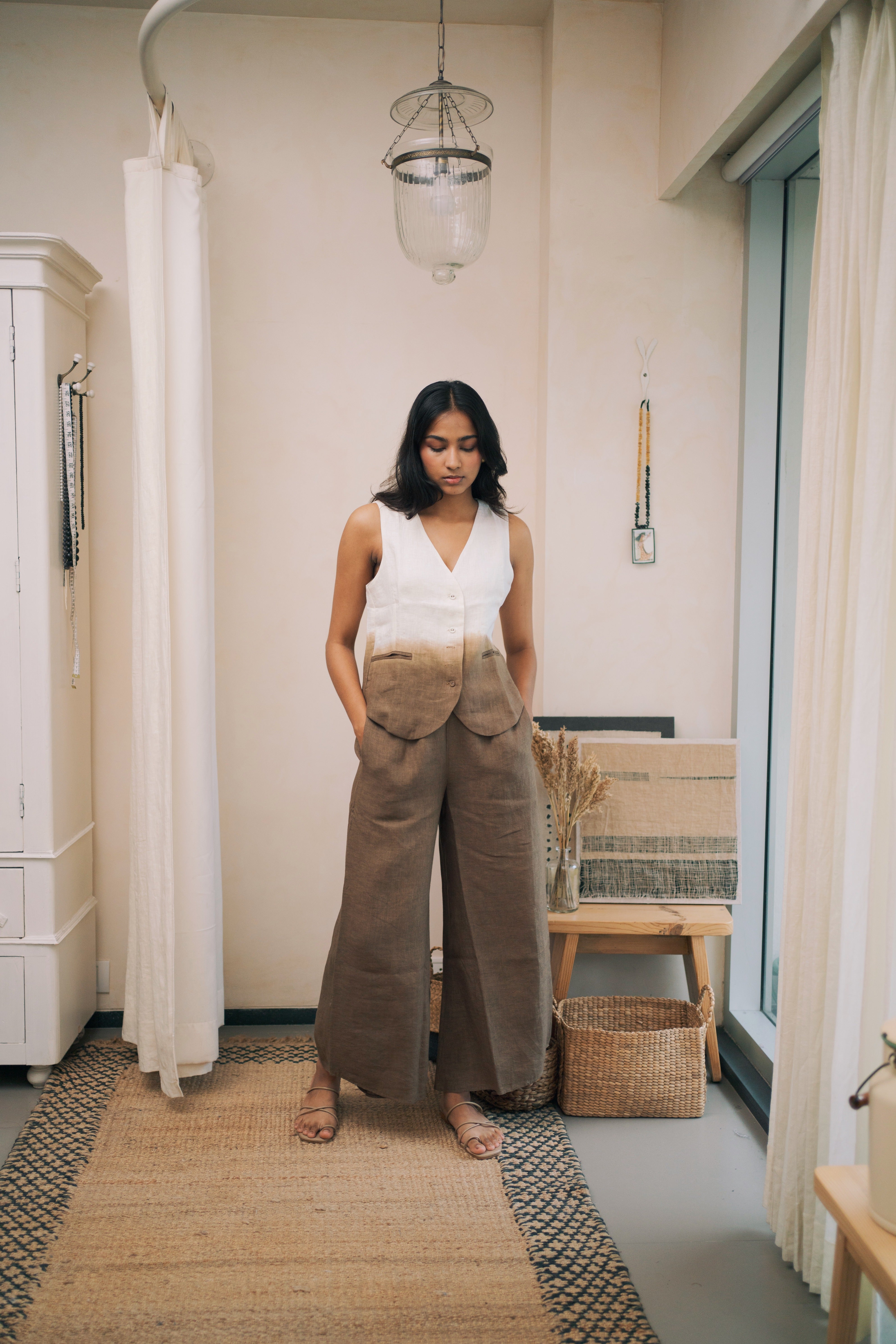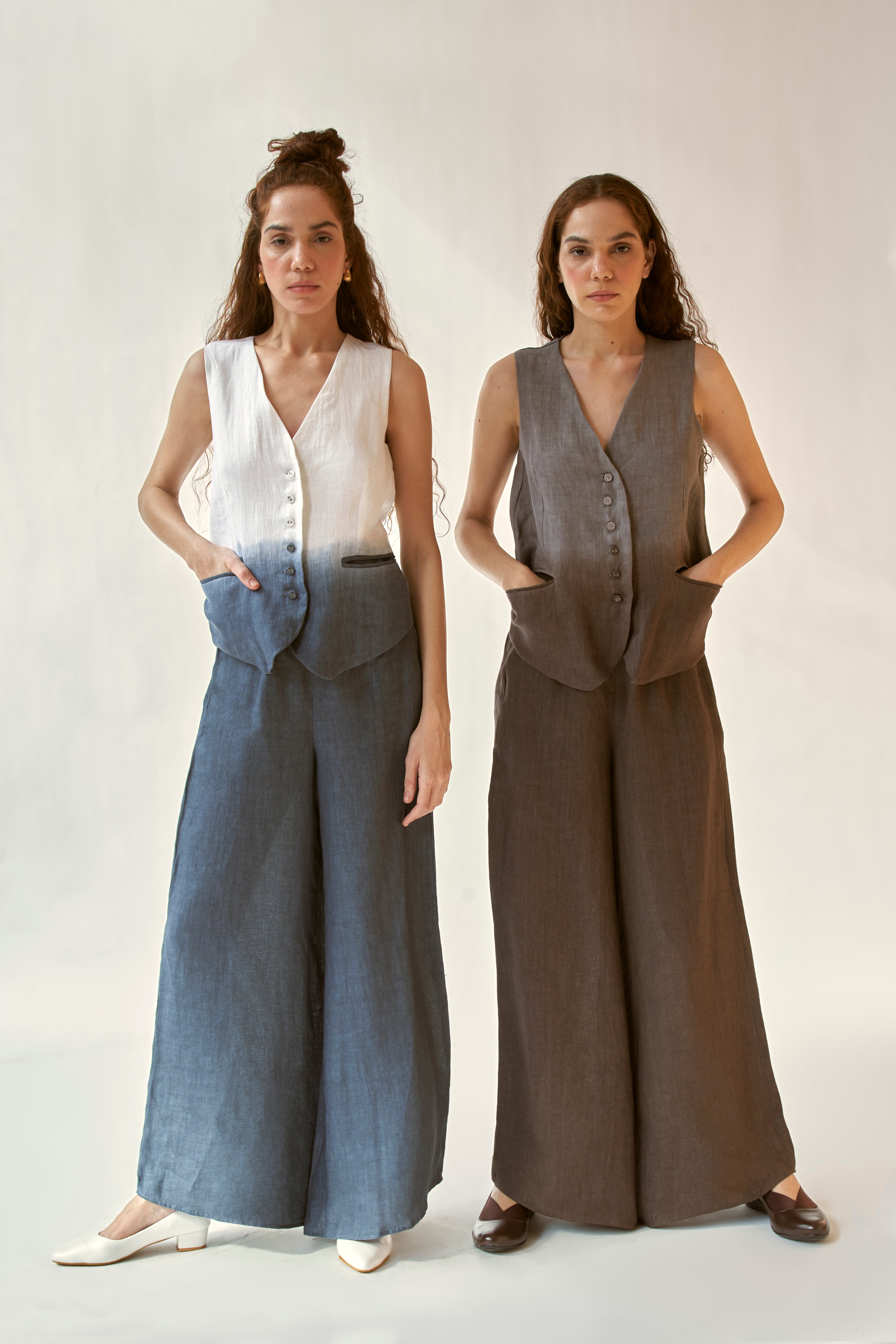 linen ombre waistcoat co-ord set