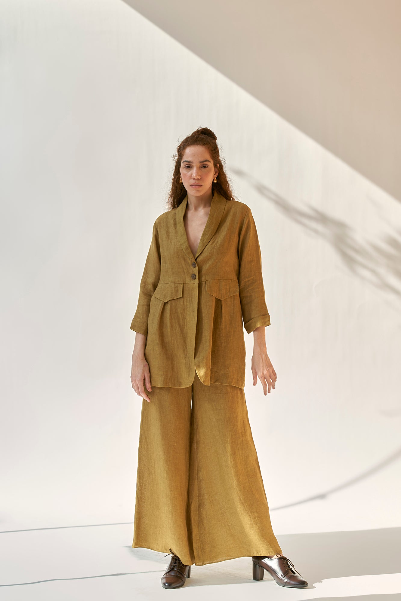 A stylish blazer with a classic lapel. Features a distinctive silhouette & unique cuffs on the sleeves.