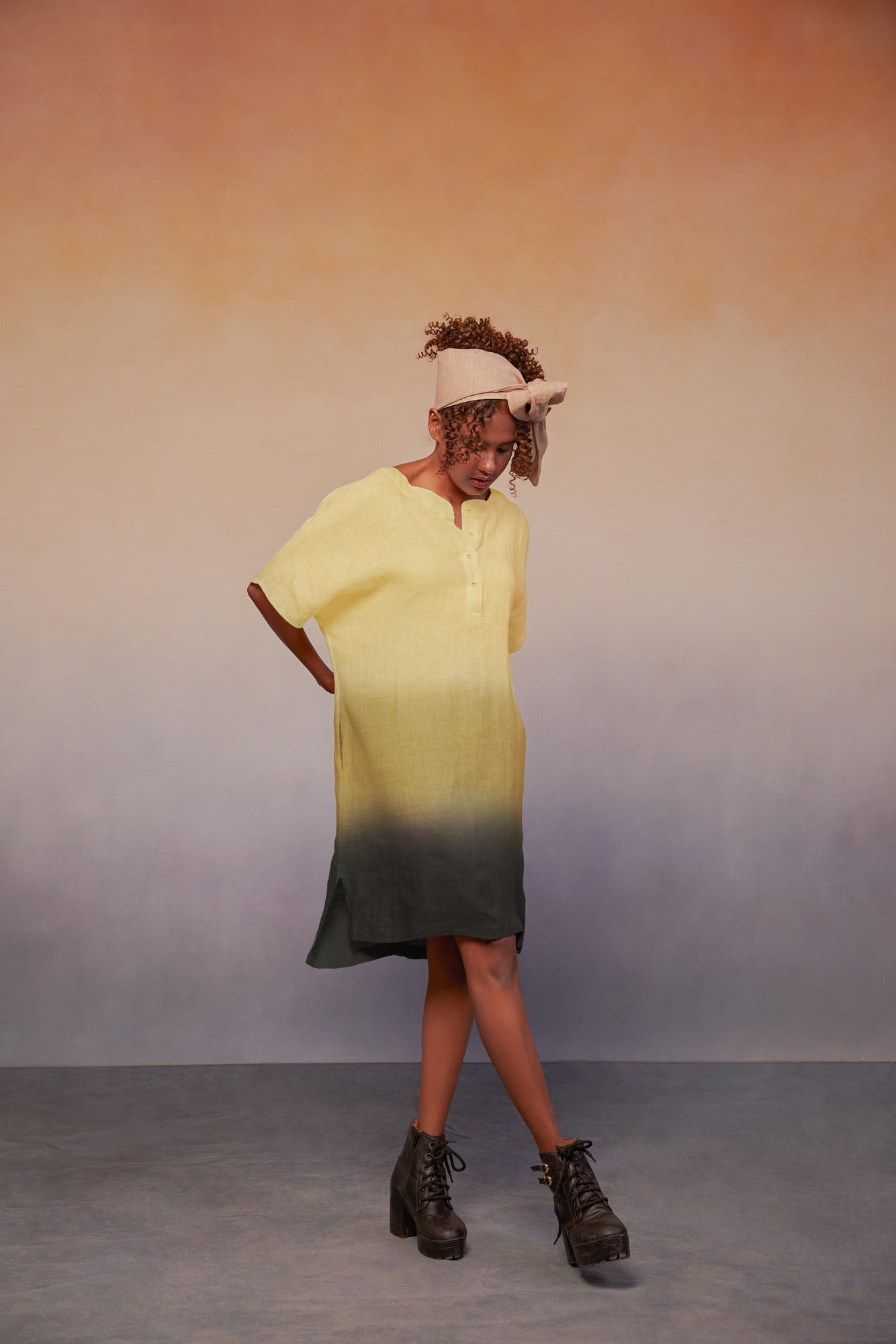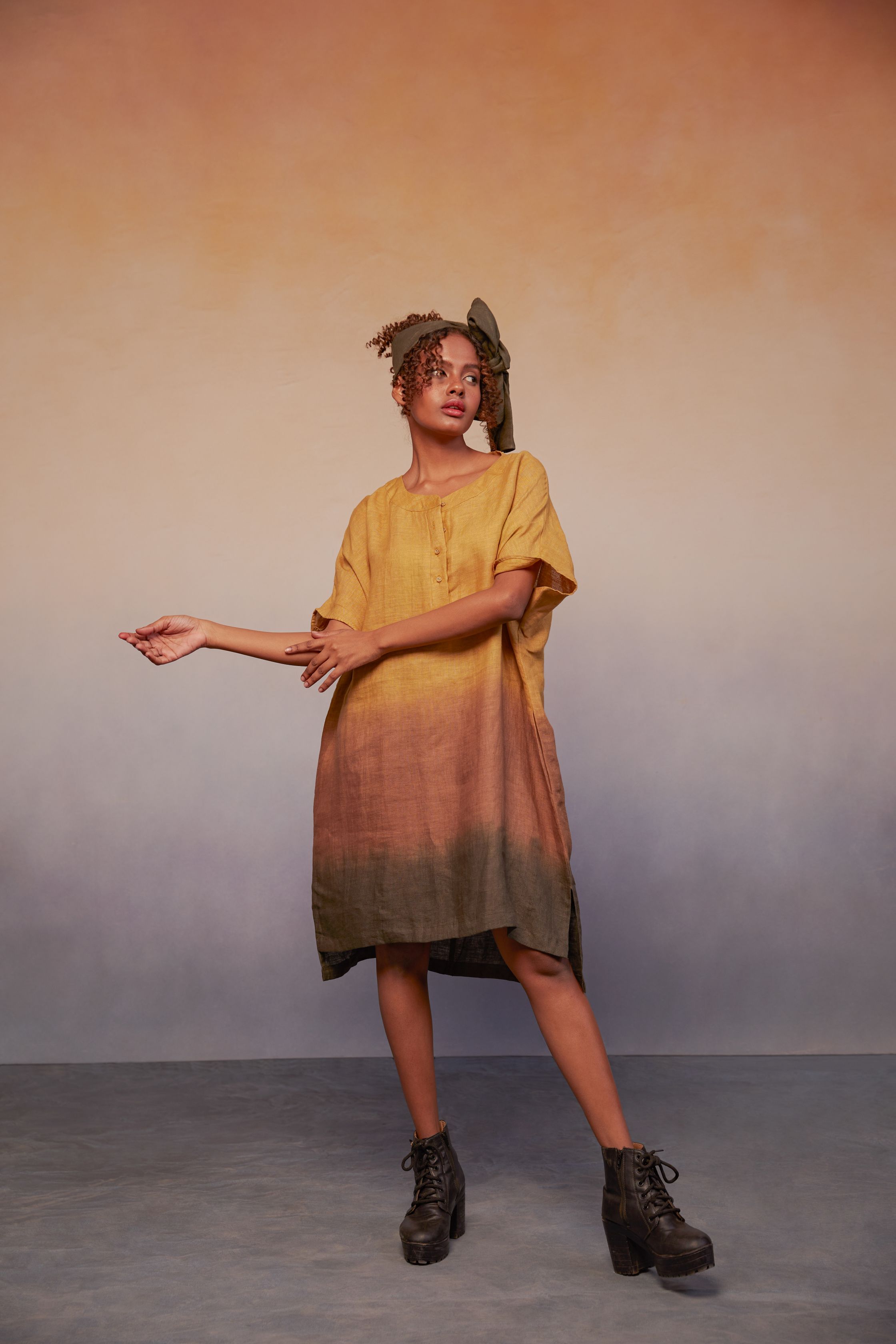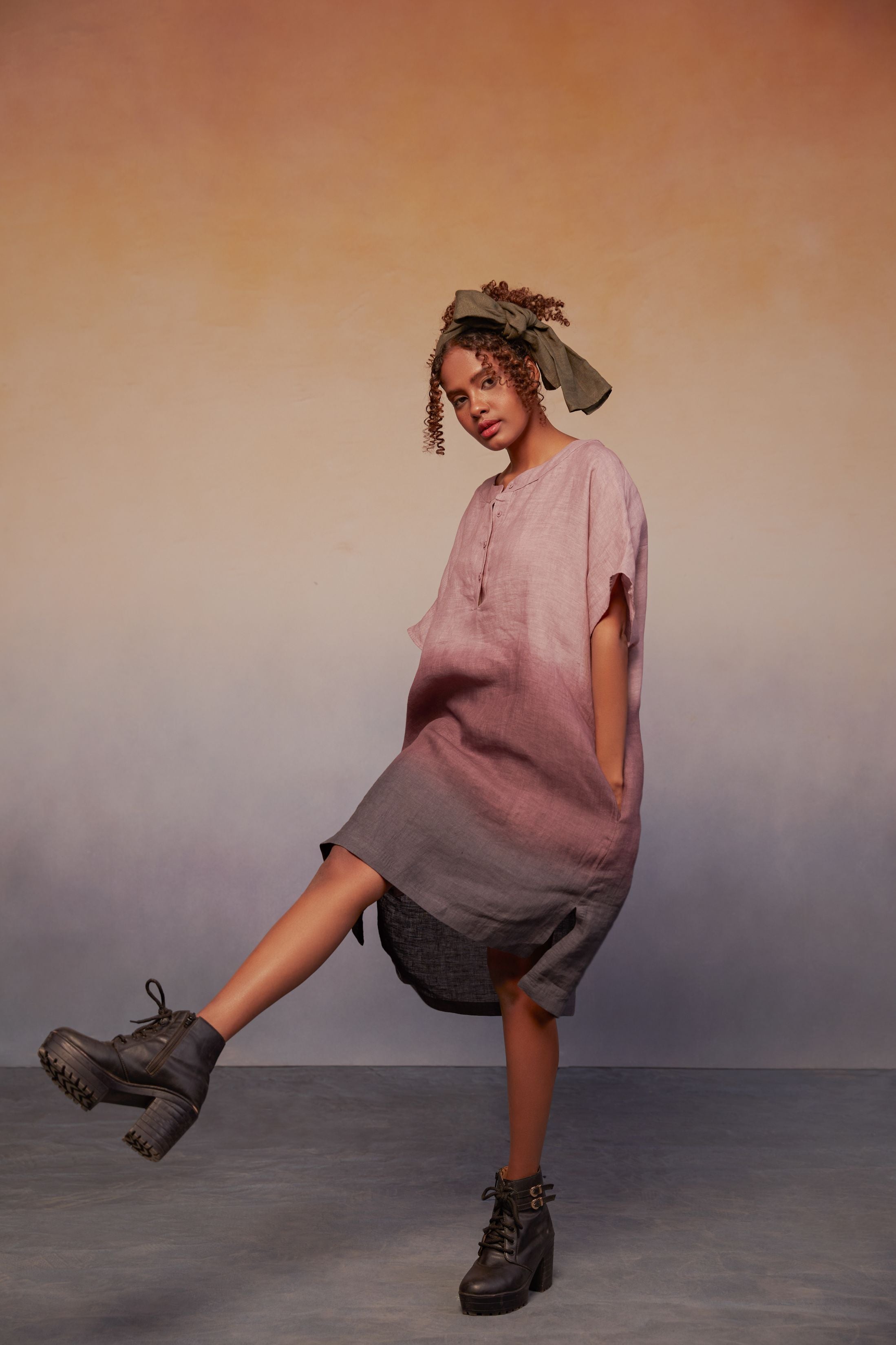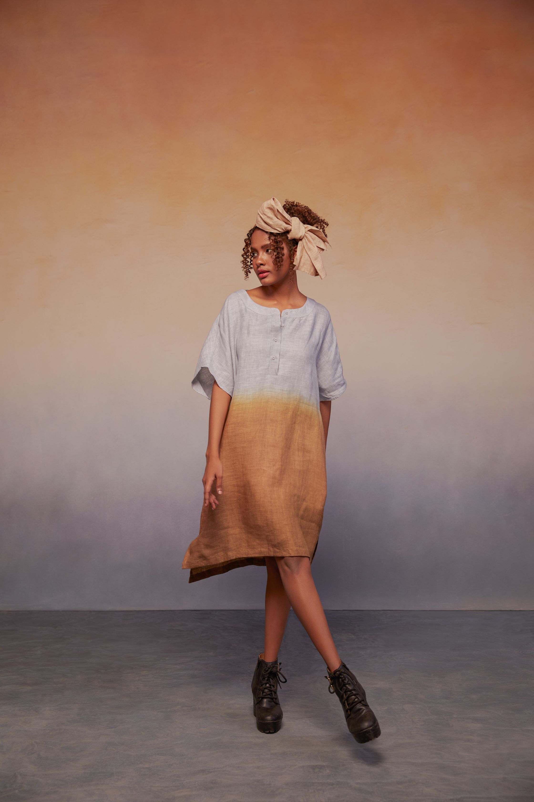 I love how the 3-color ombre transitions so gracefully in this linen dress. The loose fit adds to its charm, making it both chic and comfortable for any occasion.