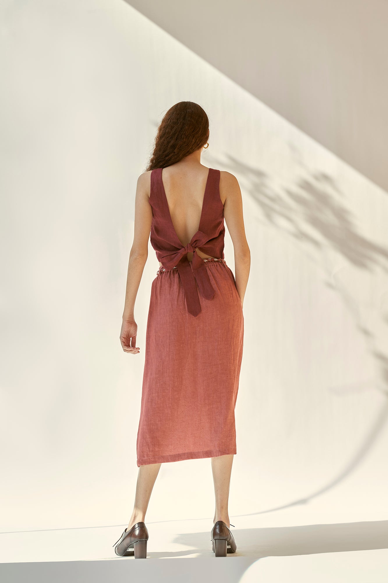 Comfortable & stylish skirt which falls below the knee. Fastened with a beautiful multicoloured braided belt. A small slit at the centre front for added style.