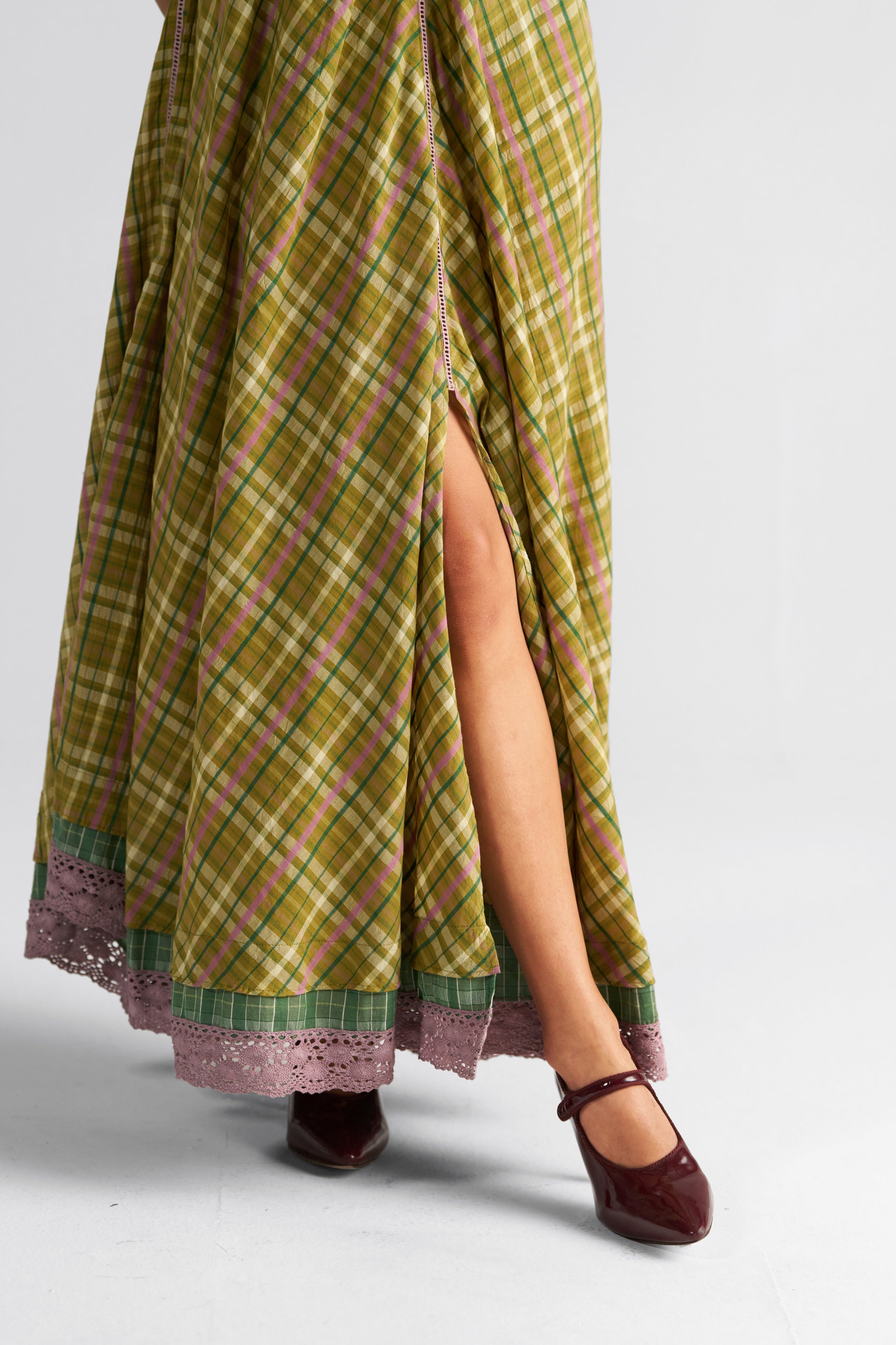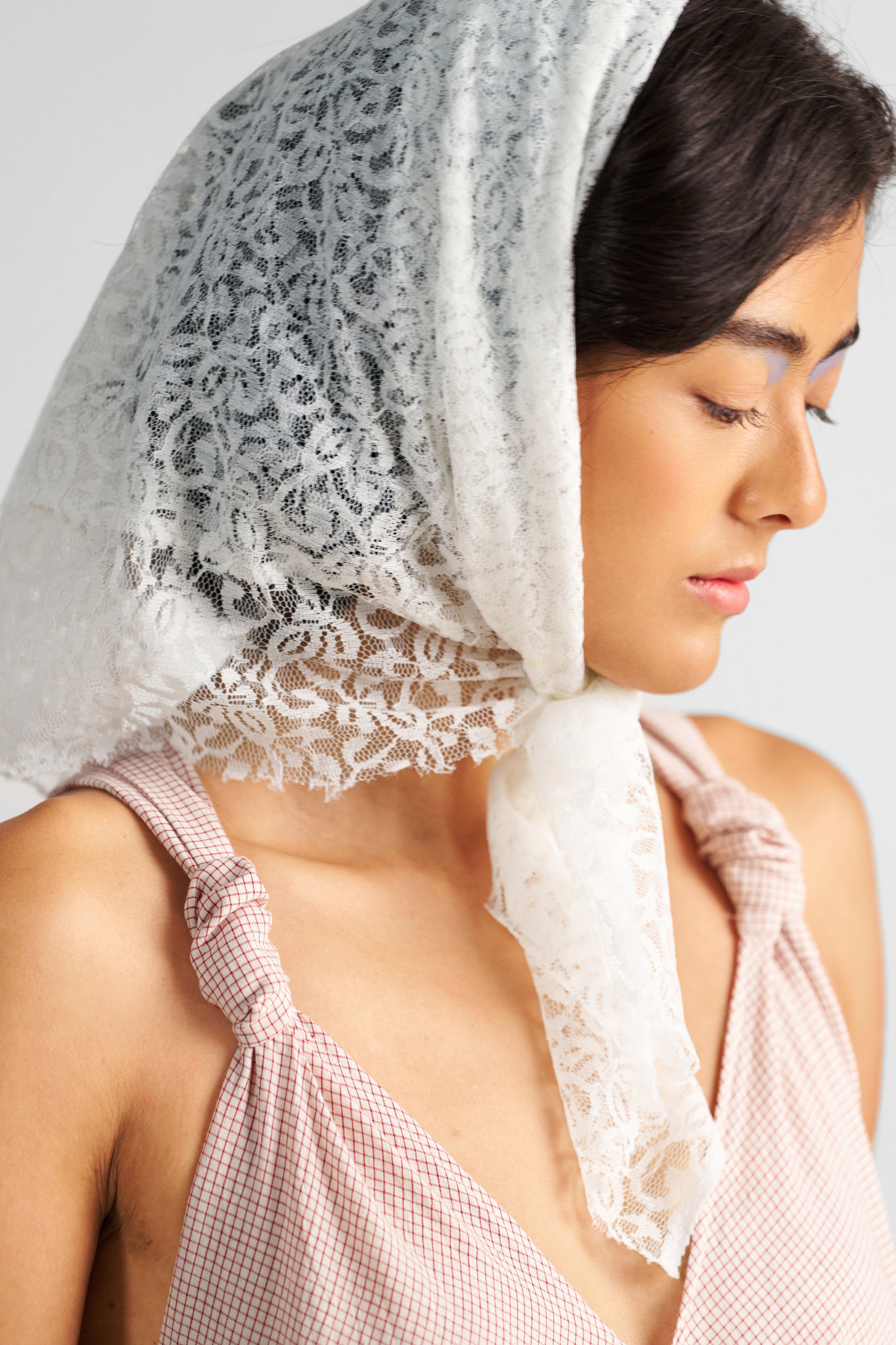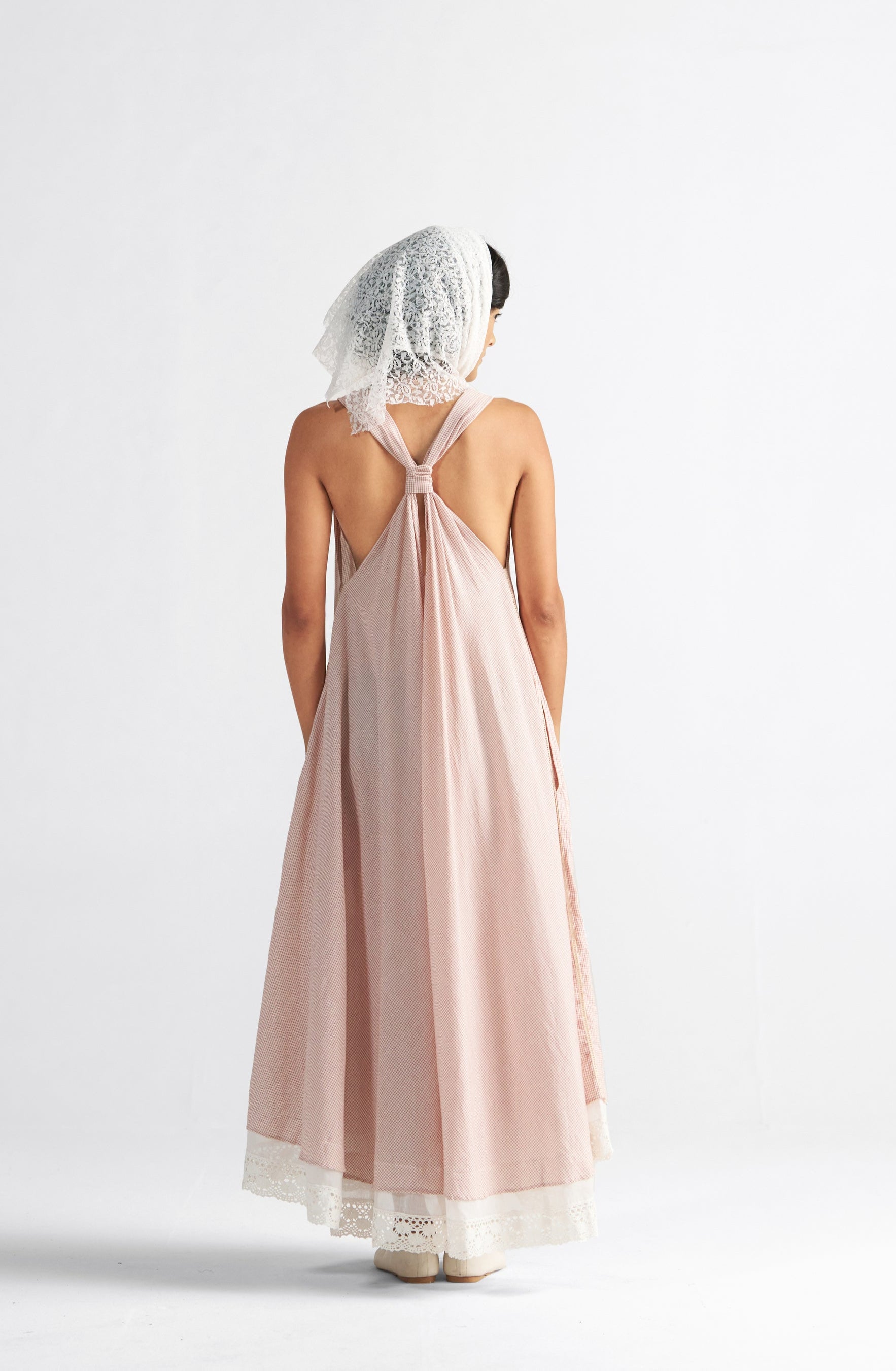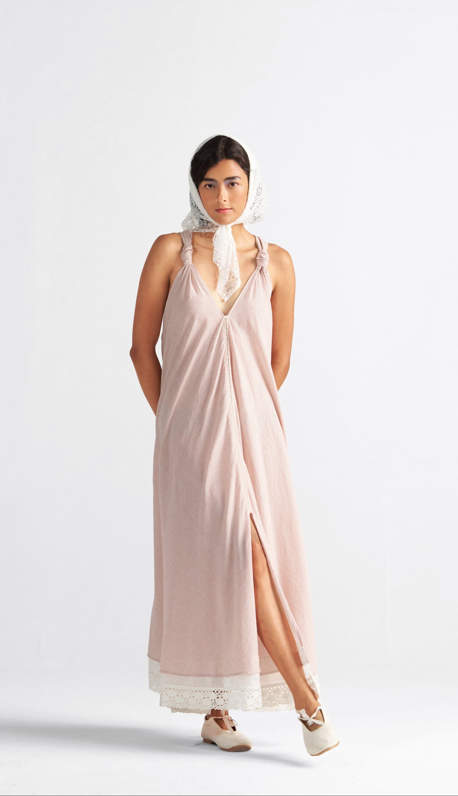 Handwoven in breathable cotton checks and cut on the bias, this backless summer dress flows with you. It features a soft knot at the neckline, cross-back straps, practical pockets, and delicate lace detailing at the hem. Madeline is your go-to for sunlit afternoons, slow gatherings, or just feeling beautifully yourself.