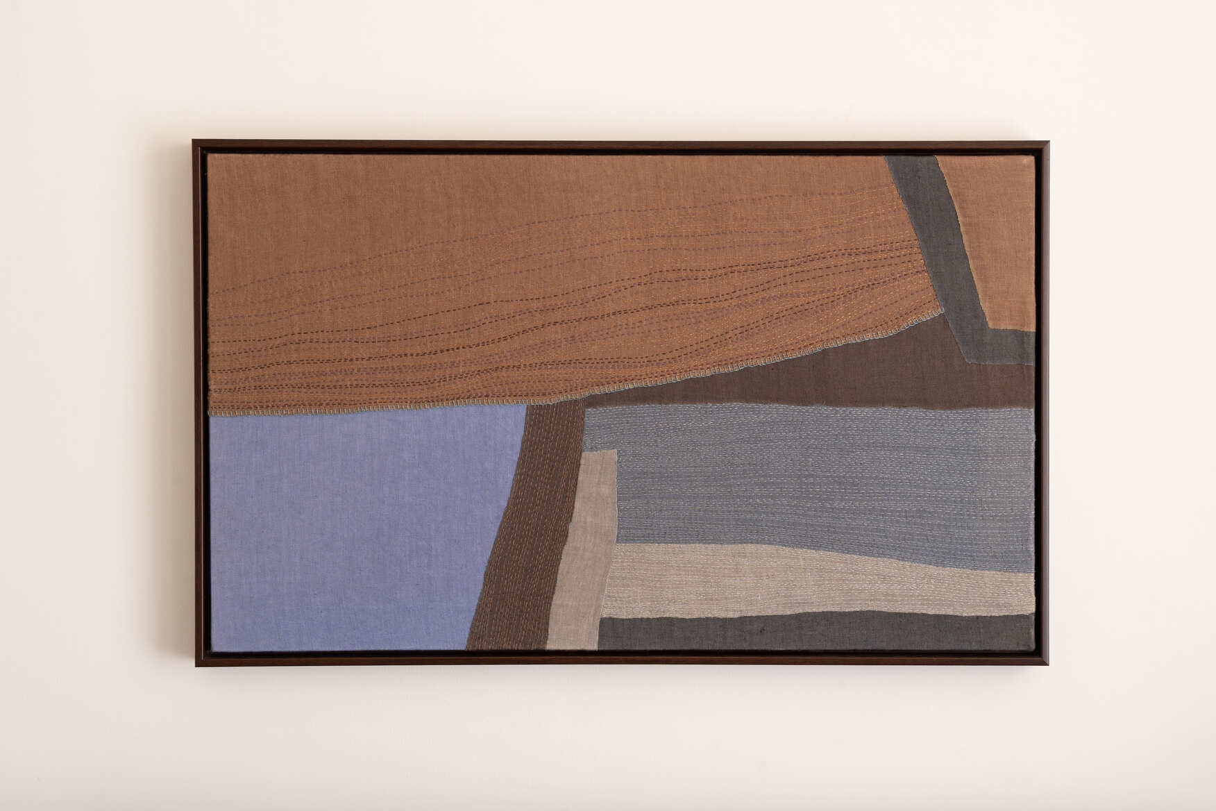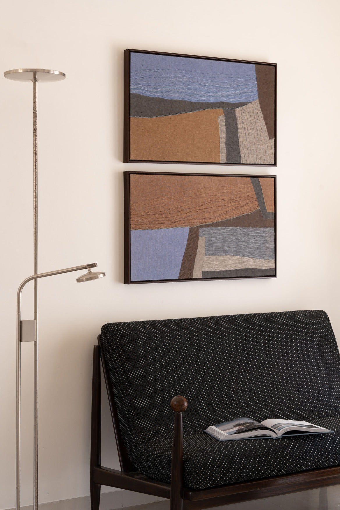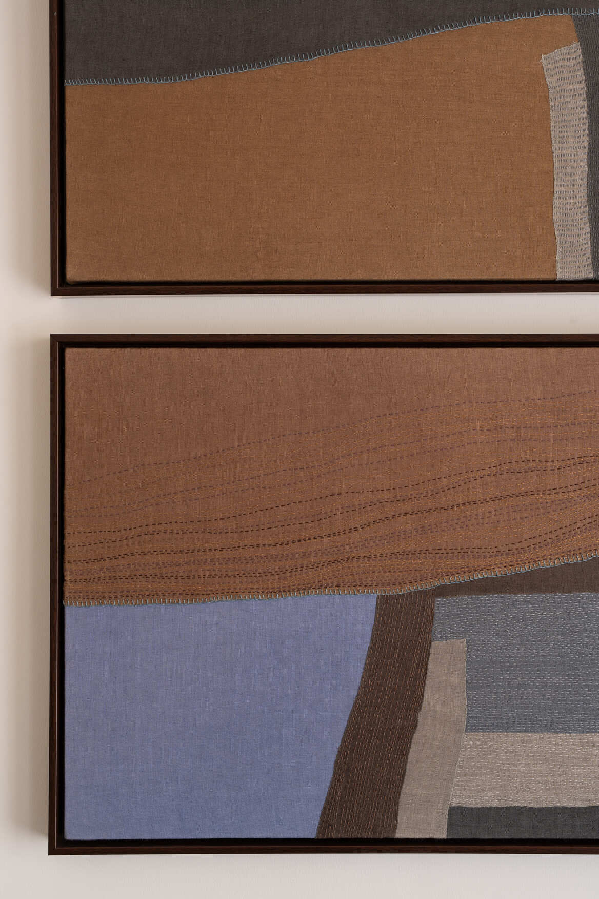 A quiet reflection on place, presence, and the slow passing of time, this set of two artworks speaks through fabric and thread—layered, stitched, and composed by hand. Subtle shifts in color, soft gradients, and delicate textures mirror the ways landscapes hold light, shadow, and memory. There is rhythm in the repetition—marks made stitch by stitch, gently altered with each gesture. Like the terrain we return to, or the scenes we carry in our minds, these works invite a sense of stillness and quiet familiarity. This set brings a grounded calm into your space. More than just something to display, it’s something to live with—something that lingers