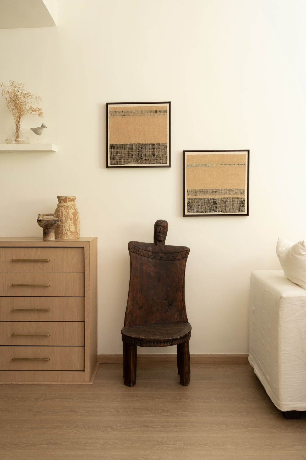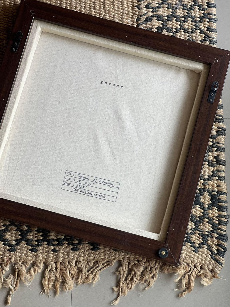 Silent Whispers came to life through a simple curiosity: what happens when we start undoing the fabric itself? As we gently puled threads away, what emerged was both surprising and satisfying—the fabric unraveled to reveal a quieter rhythm underneath, exposing layers we hadn’t seen before. The dark underlayer isn’t just a backdrop; it’s a participant, peeking through like a well-kept secret. There’s something meditative, almost mischievous, in the act of undoing—a tactile joy in watching structure loosen, lines shift, spaces breathe. Silent Whispers holds that moment: part play, part pause. It’s where minimalism meets texture, and where silence finds its own voice —subtle, honest, and quietly confident