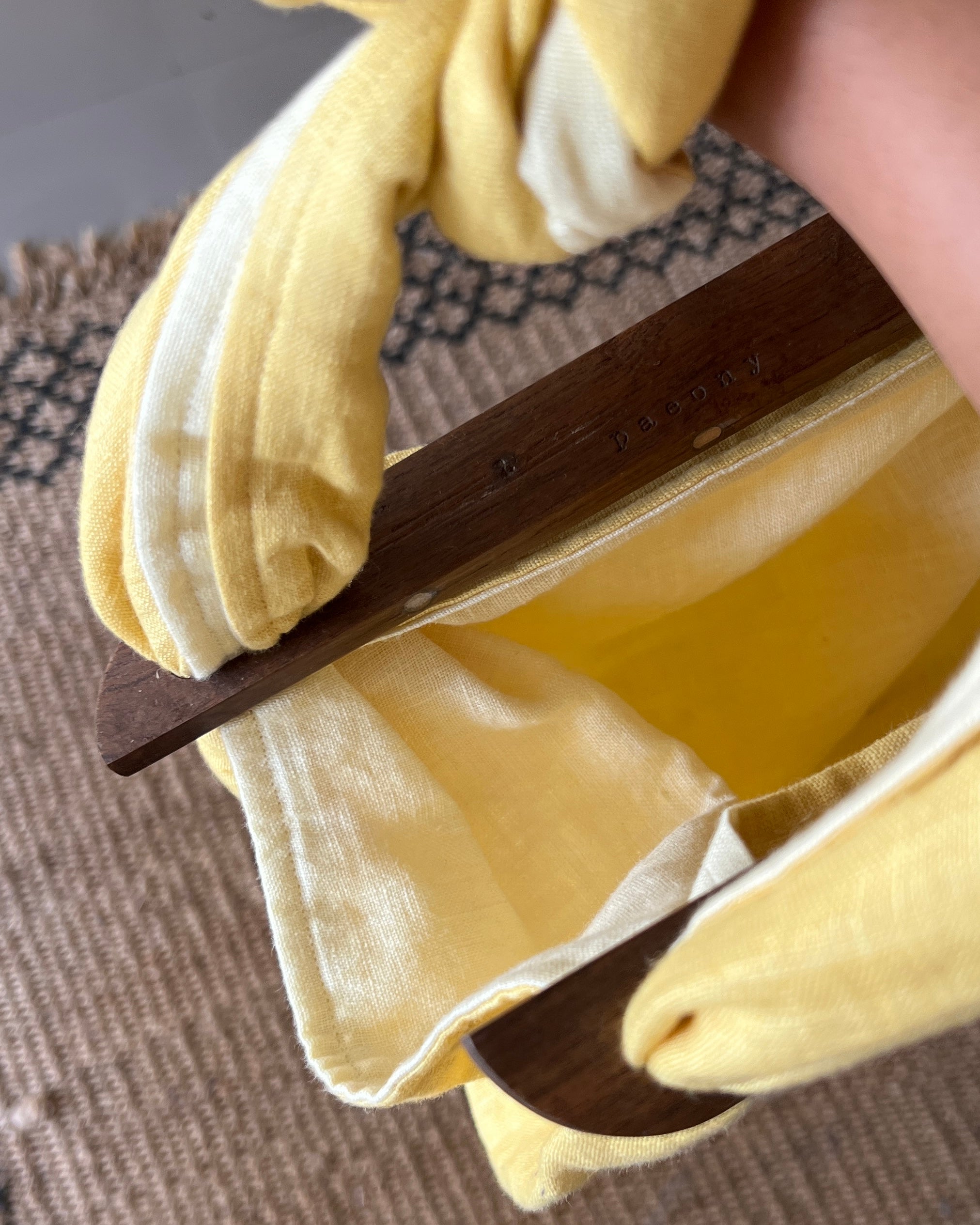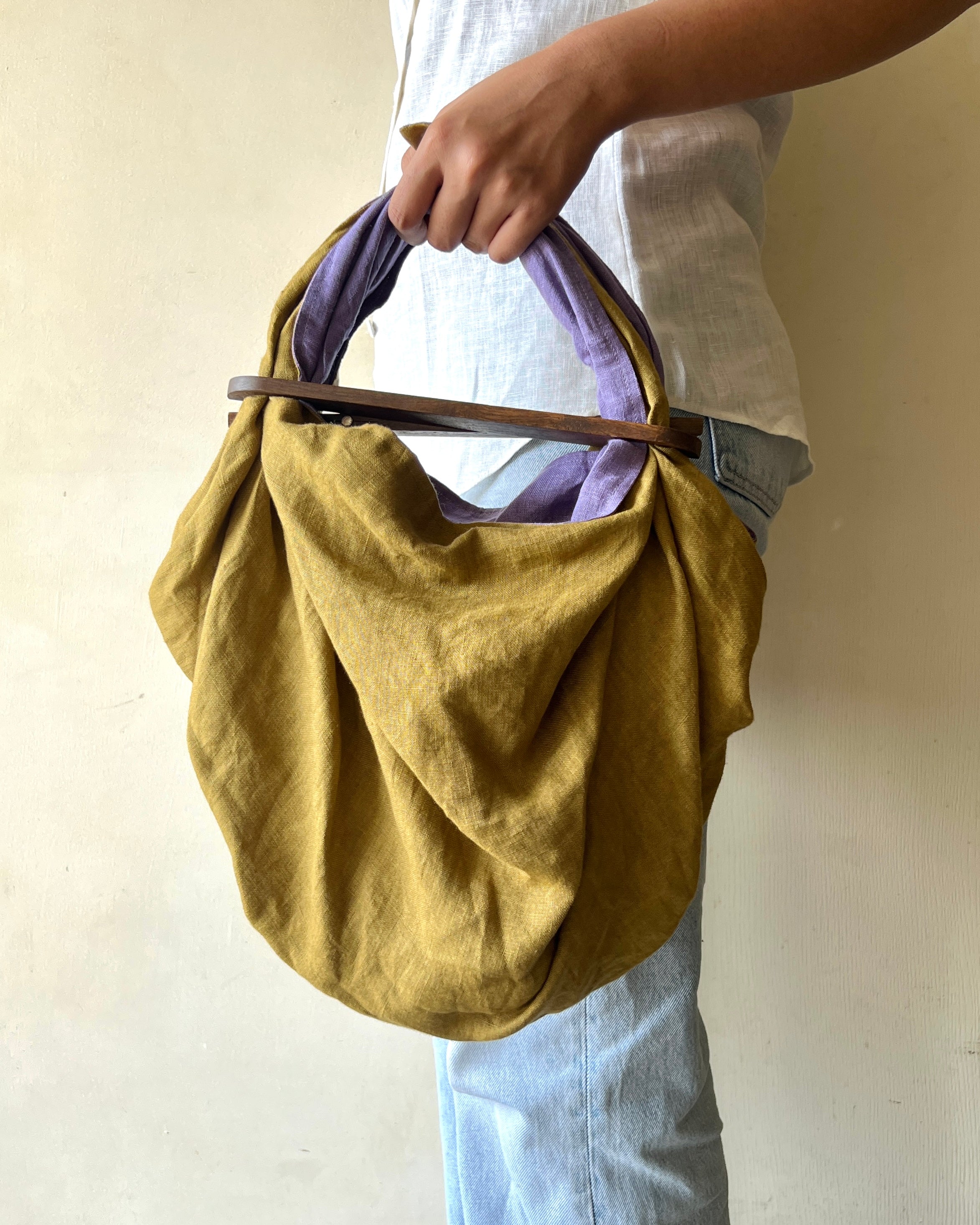 "Elevate your style with our exquisite handcrafted reversible linen handbags, perfectly paired with sturdy handcrafted wooden handles. Timeless, versatile, and effortlessly chic, these bags complement any outfit, from casual wear to dressier ensembles. The natural texture of linen and wood creates a unique harmony, making each bag a one-of-a-kind treasure for everyday adventures."
